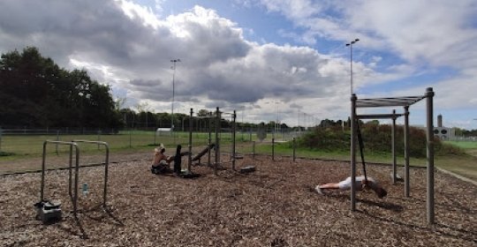 Expérience fantastique: Meerdere pull up bars, Finse looppiste op een paar meter, monkey bars en parallel bars. Je kan ook gemakkelijk naar toilet gaan in de nabijgelegen sporthal