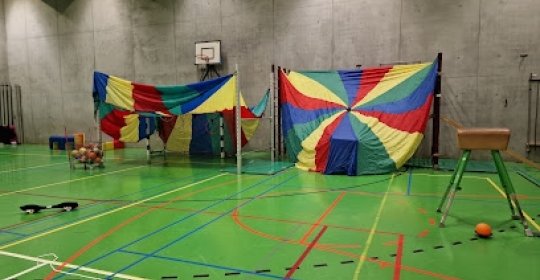 Expérience fantastique: Review behelst enkel de activiteit 'bewegingsschool' van de VGC-sportdienst op zondagvoormiddagen. Grote sporthal waarin wekelijks een ander parcours wordt opgesteld voor peuters en kleuters. Meerdere kleedkamers aanwezig. Toffe animatoren. Makkelijk bereikbare sporthal: halte Heliotropen/Chazal (tram 7), halte Bichon:(bus 64, 65) en halte Louis Bertrand (bus 66).